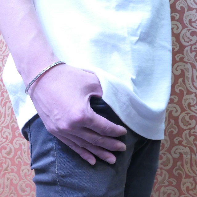 サイズは、S(レディース)とM(メンズ)の2サイズ展開で、単品での着用はもちろんですが、バングルとの重ねづけや、ホワイトハーツ・ターコイズなどの色味のあるブレスレットと合わせると劇的にイメージが変わります。