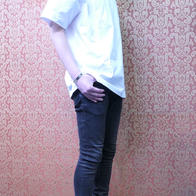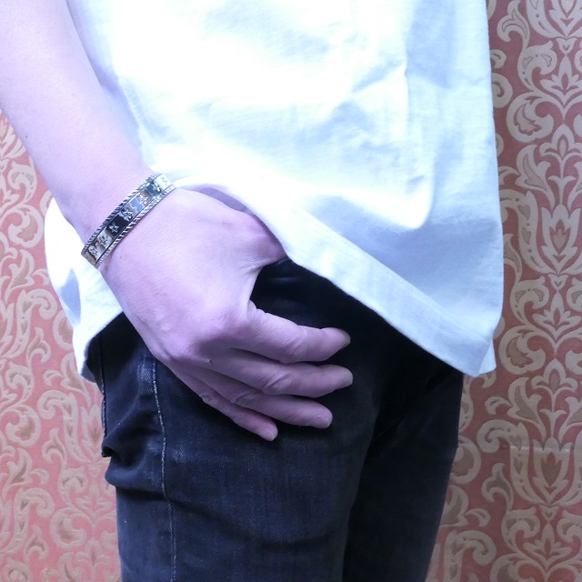 単品での着用はもちろんですが、形状の異なるバングルや色味のあるビーズブレスレットとの組み合わせもお勧めです。