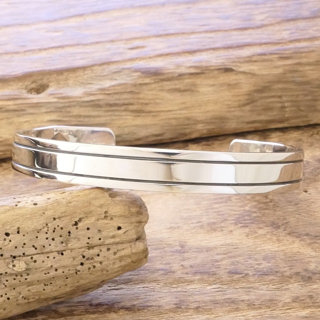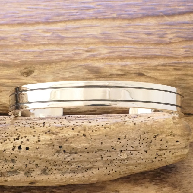 装飾は華美過ぎずシンプルにをコンセプトに、わざと余白を多くしたデザインの平打ちバングル。