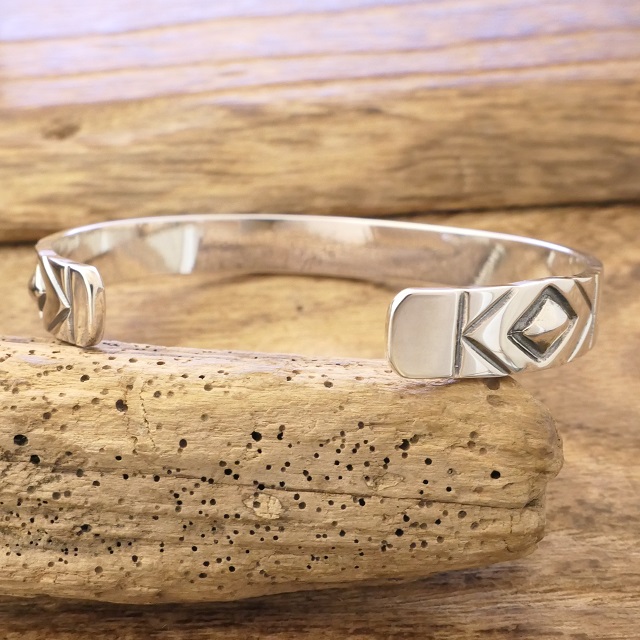 こちらのバングルはキャスト製法ではなく、銀板にスタンプを叩き曲げて作製しておりますため、スタンプのズレ・歪み・凹凸などが生じますが、ハンドメイド品の持つ魅力の一つでもあり、不良品ではございませんので、予めご了承の程、宜しくお願い申し上げます。