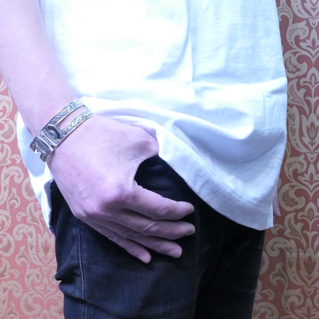ルーツを感じる洗練されたデザインに繊細さと強さを兼ね備えた美しい彫金が存在感のある腕周りを演出してくれます。