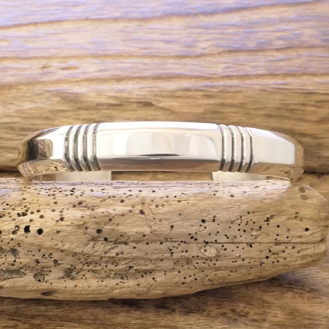 鍛造銀特有の内側から輝くような滑らかさに美しく並ぶスタンプの対比が存在感ある腕周りを演出してくれます。