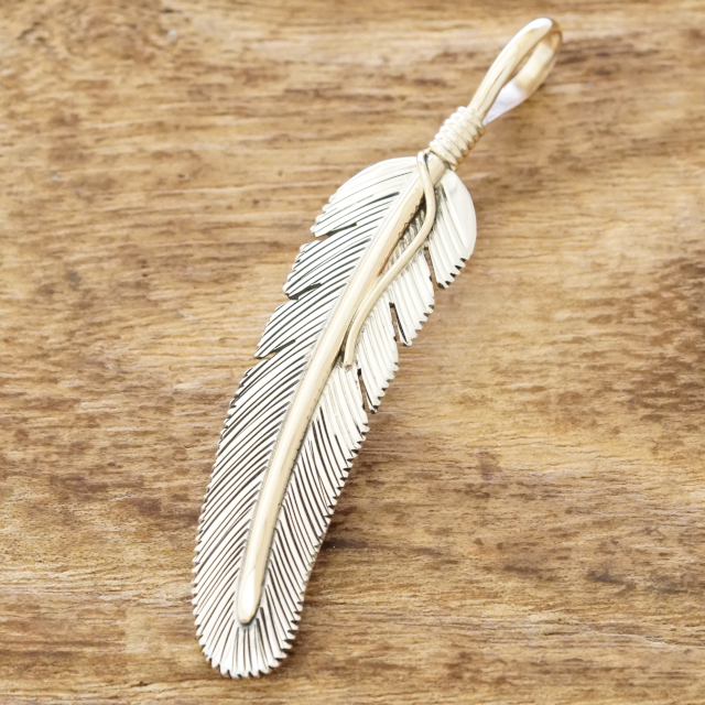 ネイティブアメリカンにとってとても神聖なモチーフのひとつであるイーグルフェザー。 羽根の質感の再現や立体感が出るように1点、1点、手作業で制作しています。