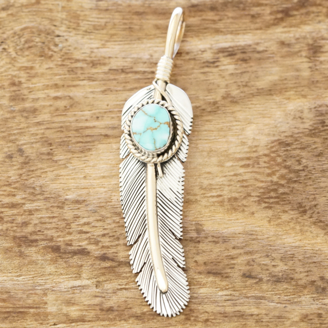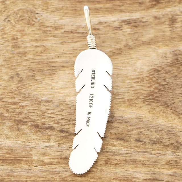 ネイティブアメリカンにとってとても神聖なモチーフのひとつであるイーグルフェザー。 羽根の質感の再現や立体感が出るように1点、1点、手作業で制作しています。