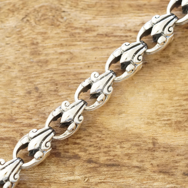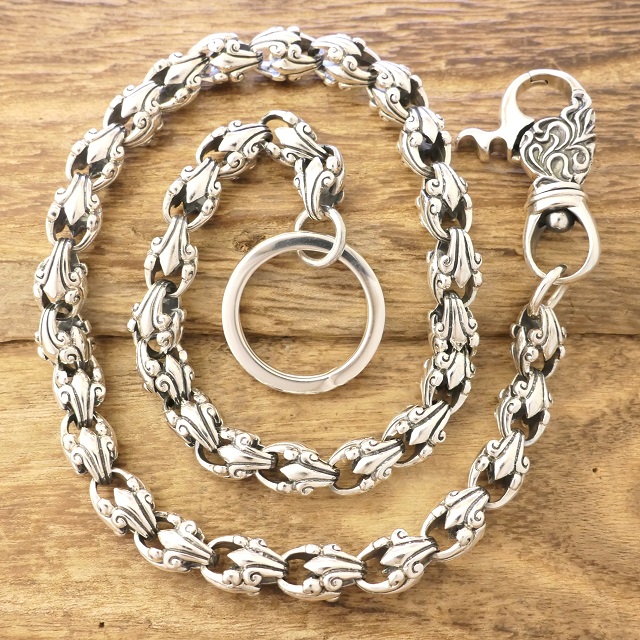 百合の紋章を重ね合わせたパーツを連結したSilver925製ウォレットチェーン。