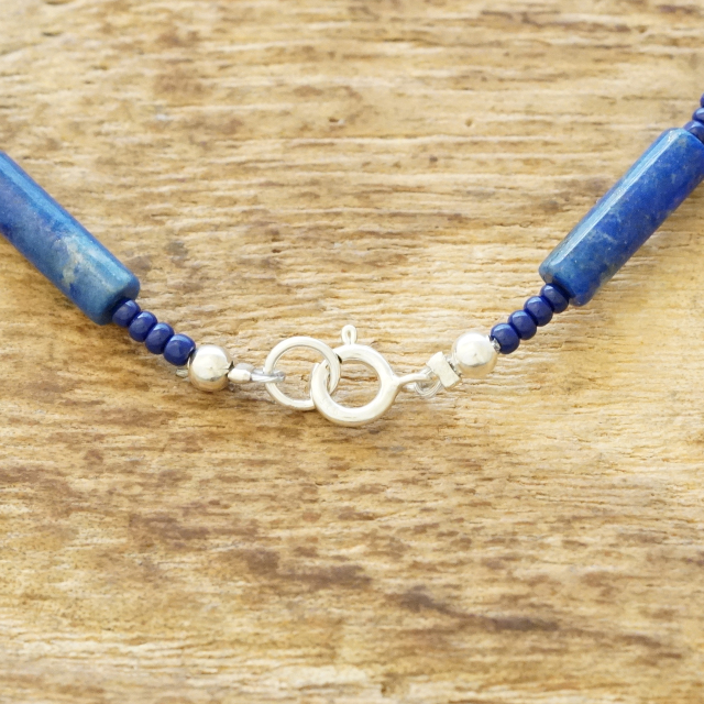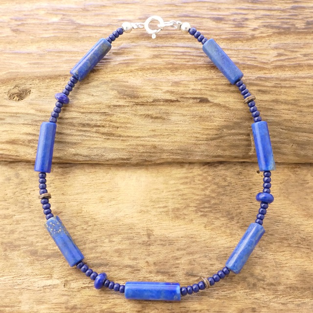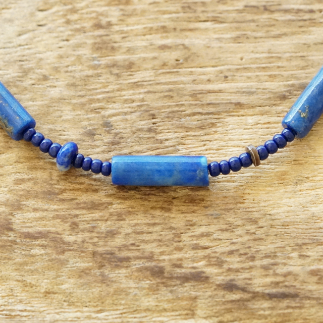 厳選した天然素材のラピス、シェルで構成されたビーズネックレス。
