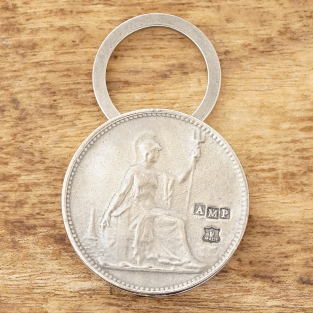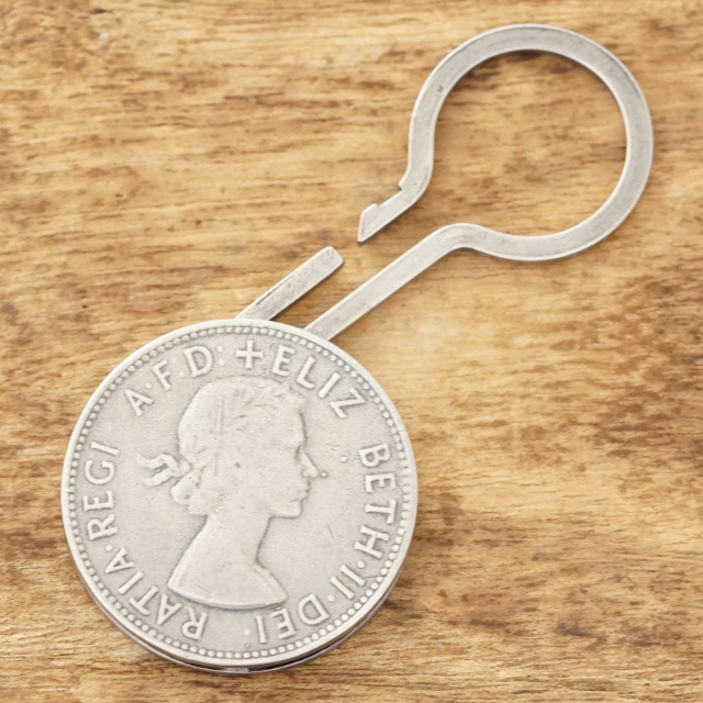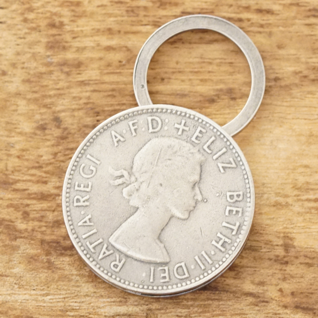 2枚のエリザベスコインを加工し作製したキーホルダー。